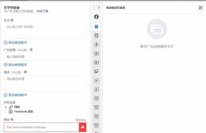 廣告格式有三種,默認選擇單圖片或視頻,格式在整個廣告里的重要性大概占80%